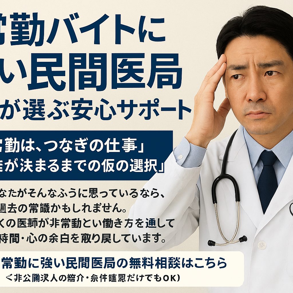非常勤は、逃げでも妥協でもなく、「自分の人生に責任を持つ」ための選択です。民間医局は、その選択を一人にはしません。